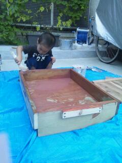 箱 金澤 萌 2012年9月24日 子育てのこと 木工, 塗装 先週ちらっと書いた、作ったもの 木の箱です。 ちびさんが塗装してます。 出来上がり後はちびさんの物になるのでね!! もう完成してるんだけど、雨でちゃんとは写真を撮ってないので、途中風景です♪ 何を入れる箱か?! 完成写真を待っててね そんな用の箱かよ!って突っ込みたくなるはず(笑) フェイスブックには、もう載せてるけどね 今日は都内うろうろ 晴れてよかった